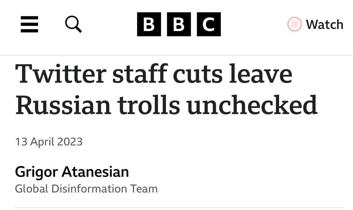 5: BBC (2023): Twitter Staff Cuts Leave Russian Trolls Unchecked