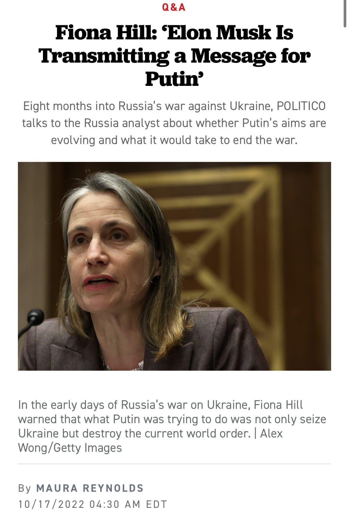 2: Politico (2022): 'Elon Musk Is Transmitting a Message for Putin'