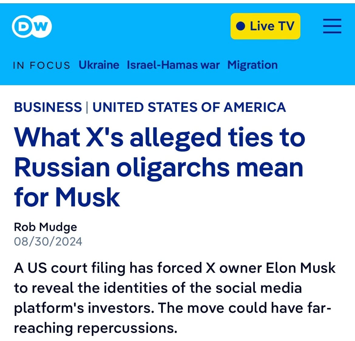 14: DW (2024): What X's Alleged Ties to Russian Oligarchs Mean For Musk