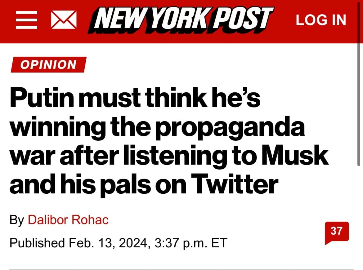 13: New York Post (2024): Elon Musk and Co. Make Sweet Music for Putin on Twitter