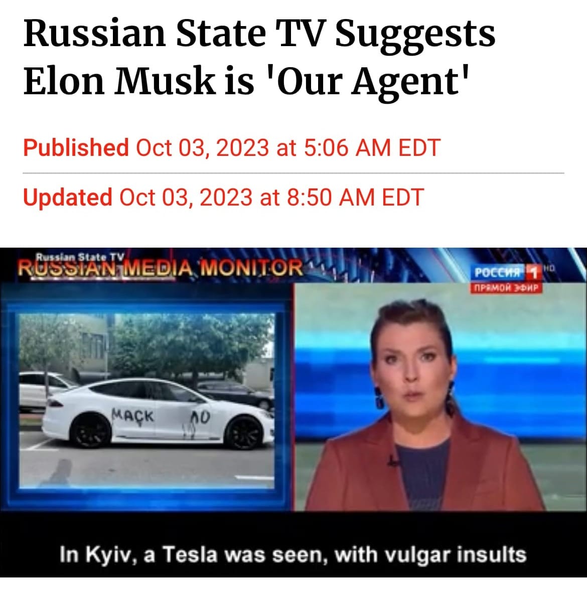 11: Newsweek (2023): Russian State TV Suggests Elon Musk is 'Our Agent'