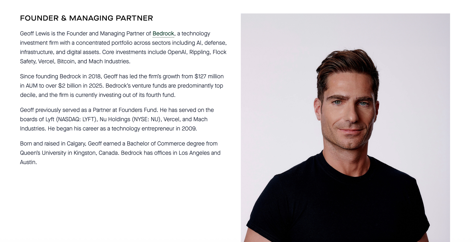 News stories about Praxis often highlight its connections to Altman and Thiel. And back in 2021, Geoff Lewis of Bedrock Capital led a fundraising round for Praxis and joined Praxis’ board of directors.