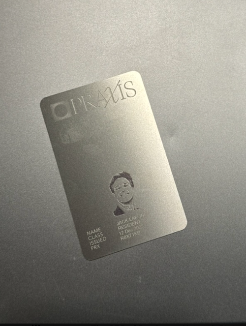 He also posted a picture of his official Praxis membership identification, a metal card engraved with his name and picture. Praxis, which claims to have over 100,000 “Praxians” signed up to become future citizens, sends the cards to prospective members.