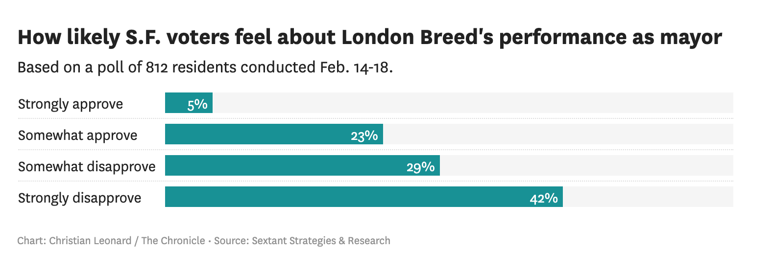 “Obviously, with the number of undecided voters that we have, you don’t want to draw too firm of a conclusion,” said Jonathan Brown of Sextant Strategies, which produced the Chronicle poll. “But … if this is the field of major candidates right now, it certainly looks like Breed is in very, very serious trouble.”