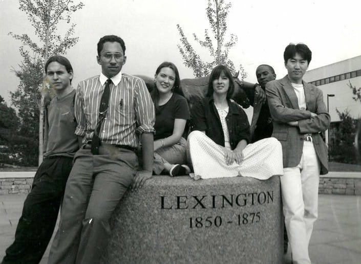 Bonus: During the summer of 1995, we both interned at the Lexington Herald-Leader in Kentucky. Here’s the intern group photo with me on the left (with hair!) and Jon in the back.