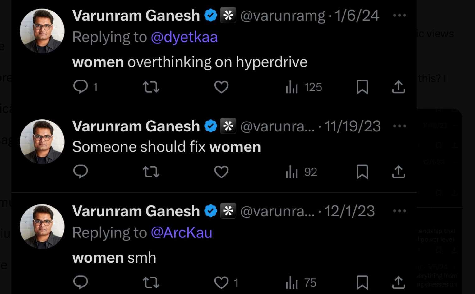 A local San Franciscan did a bit of searching and found that Warp's Head of Growth, Varunram Ganesh, has a habit of posting weird incel and misogynistic thoughts on Twitter: